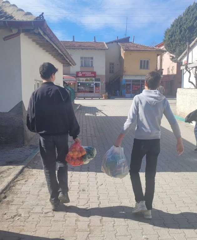 Bugün de ilçemizde kurulan semt pazarında alışverişini yapan yaşlılarımızın poşetlerini taşıyan öğrencilerimiz yeni bir iyilik hareketine imza attılar.